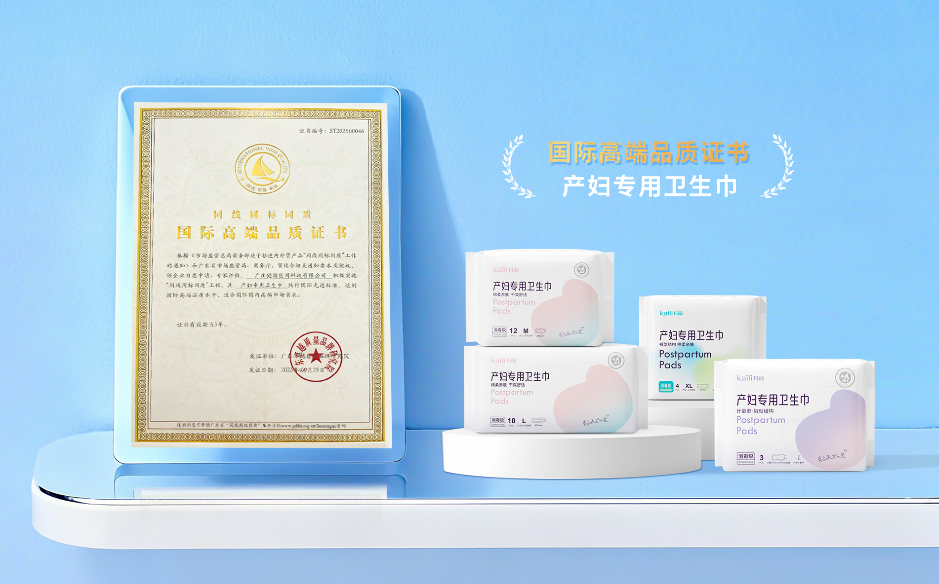 产妇卫生巾荣获“同线同标同质”(三同)国际高端品质认证